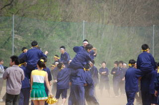 | ▼運動会・騎馬戦の一コマ、土煙が上がる熱戦!(2008/04/23) |