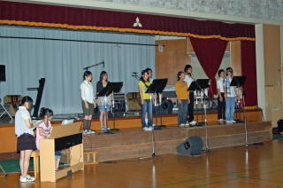| ▼芸能発表、合唱部のステージ。舞台は小体育館。(2008/07/05) |