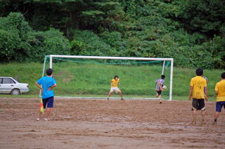 泥田状態のグランドで、3年生同士の戦いはPK戦へ突入。